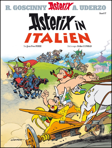 Um den Band zu füllen, wird das nicht nach dem beliebten Muster „Wir gehen da rein und schlagen alles kurz und klein“ gelöst, sondern es wird eine recht gekünstelte Detektiv-Handlung konstruiert, um die Unschuld des Verhafteten zu beweisen. Die meisten auf dem Weg benutzten Motive sind altbekannt: Obelix als schüchterner Verliebter, ein wenig Satire – diesmal gegen Konzerne und die Wohlhabenden –, ein lustiger Dialekt der Portugiesen, ein Prominenter zur Wiedererkennung – warum ausgerechnet Silvio Berlusconi als Industrieller herhalten muss, bleibt eher unerfindlich –, natürlich verprügelte Römer und Piraten – der Schwarze im Ausguck spricht jetzt politisch korrekt! – und inzwischen wirklich einmal zu oft Cäsar als Deus ex calamo. Noch ein oder zwei Bände und die Fabel wird von der KI besser erfunden werden als von Fabcaro.